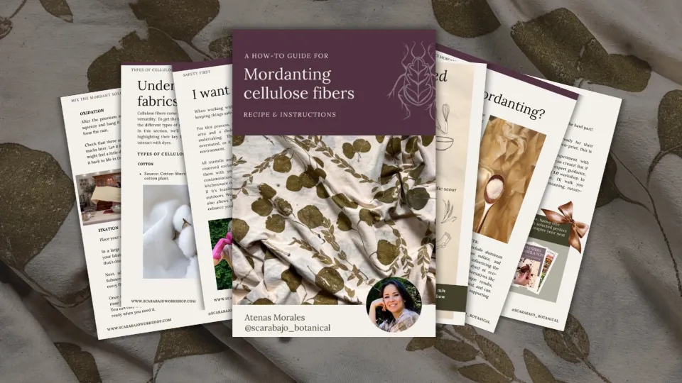 Guide To Mordanting Cellulose Fibers: The exclusive Course from Scarabajo that helps botanical artists achieve clear & crisp prints.